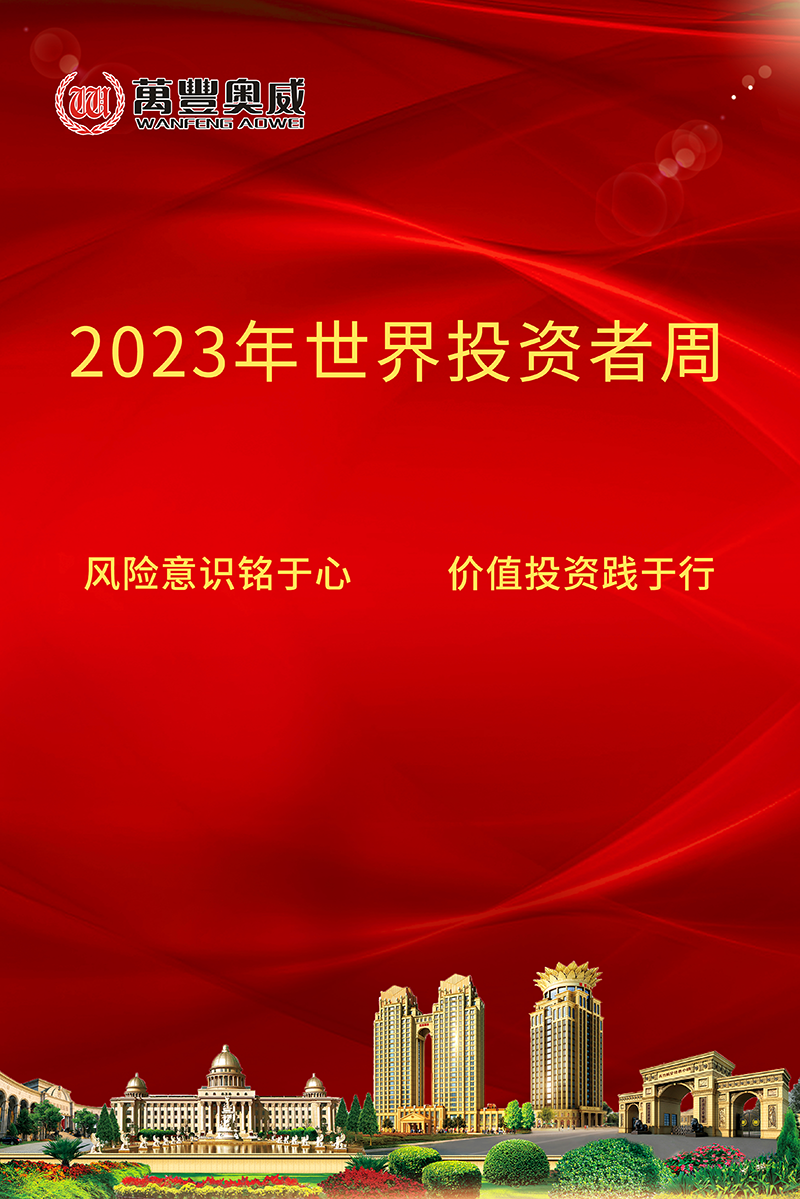 根據(jù)國際證監(jiān)會組織(IOSCO)統(tǒng)一安排,結(jié)合監(jiān)管工作實(shí)際及以往工作管理,中國證監(jiān)會定于2023年10月23日至27日,在證券期貨系統(tǒng)開展“2023年世界投資者周”活動,活動圍繞“投資者風(fēng)險應(yīng)對能力”和“可持續(xù)金融”兩大主題展開。萬豐奧威積極響應(yīng)監(jiān)管要求,開展“2023年世界投資者周”宣傳活動,本次活動的宣傳口號為“風(fēng)險意識銘于心 價值投資踐于行”。